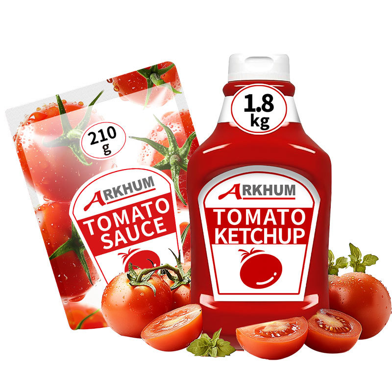 Η σάλτσα ντομάτας με γεύση ARKHUM, καταγωγής Κίνας, διατίθεται σε βολικές κονσέρβες που εξασφαλίζουν φρεσκάδα και εύκολη αποθήκευση.το προϊόν αυτό είναι εύκολα διαθέσιμο για προσωπική και εμπορική χρήση.